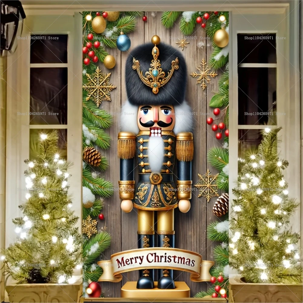 Christmas Nutcracker Door Cover Banner Merry Christmas Door Hanging Cover Gift For Indoor Outdoor Porch Christmas Party Supplies