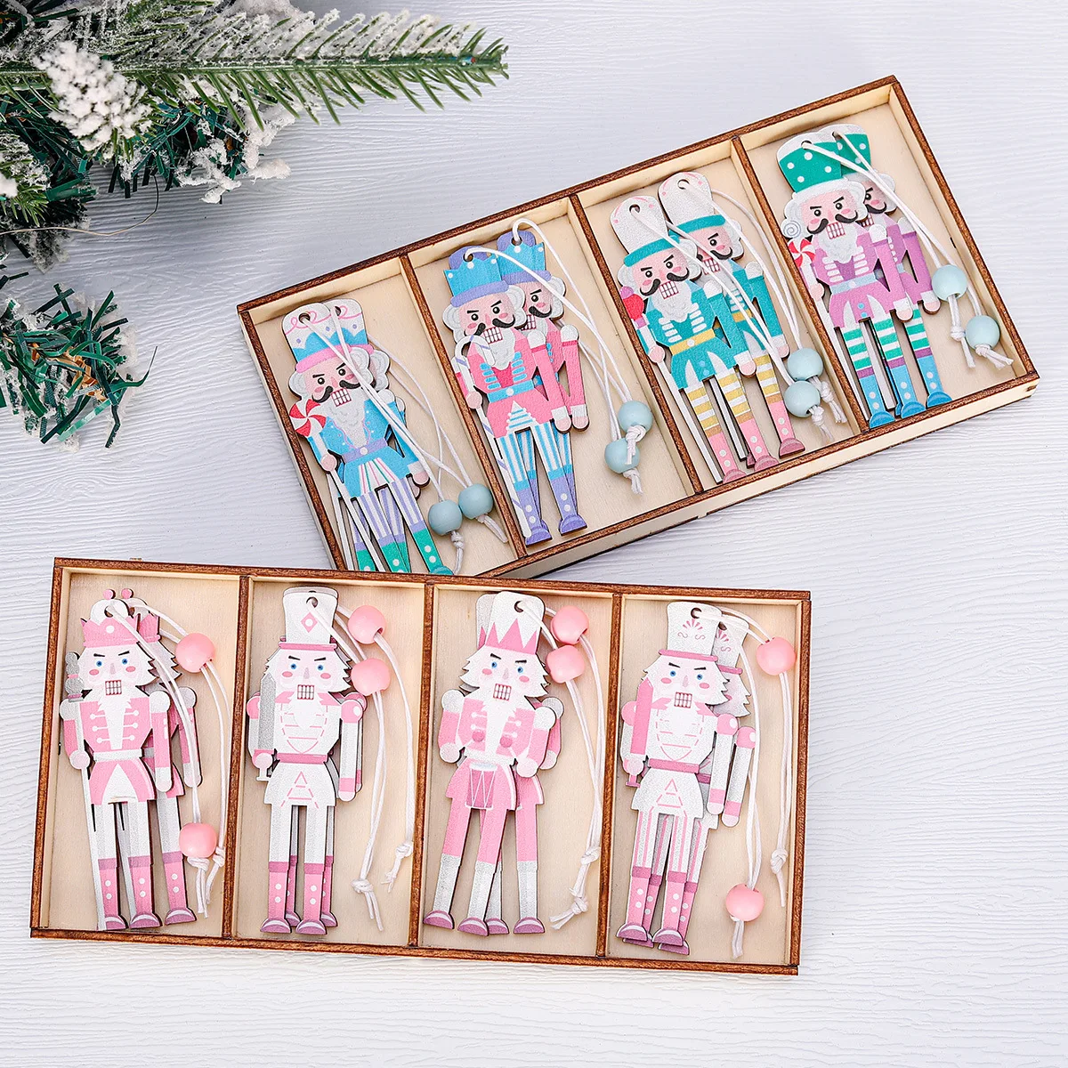 8Pcs Pink Wooden Christmas Nutcracker Soldier Pendants Xmas Tree Hanging Ornaments 2025 Christmas Decorations for Home New Year