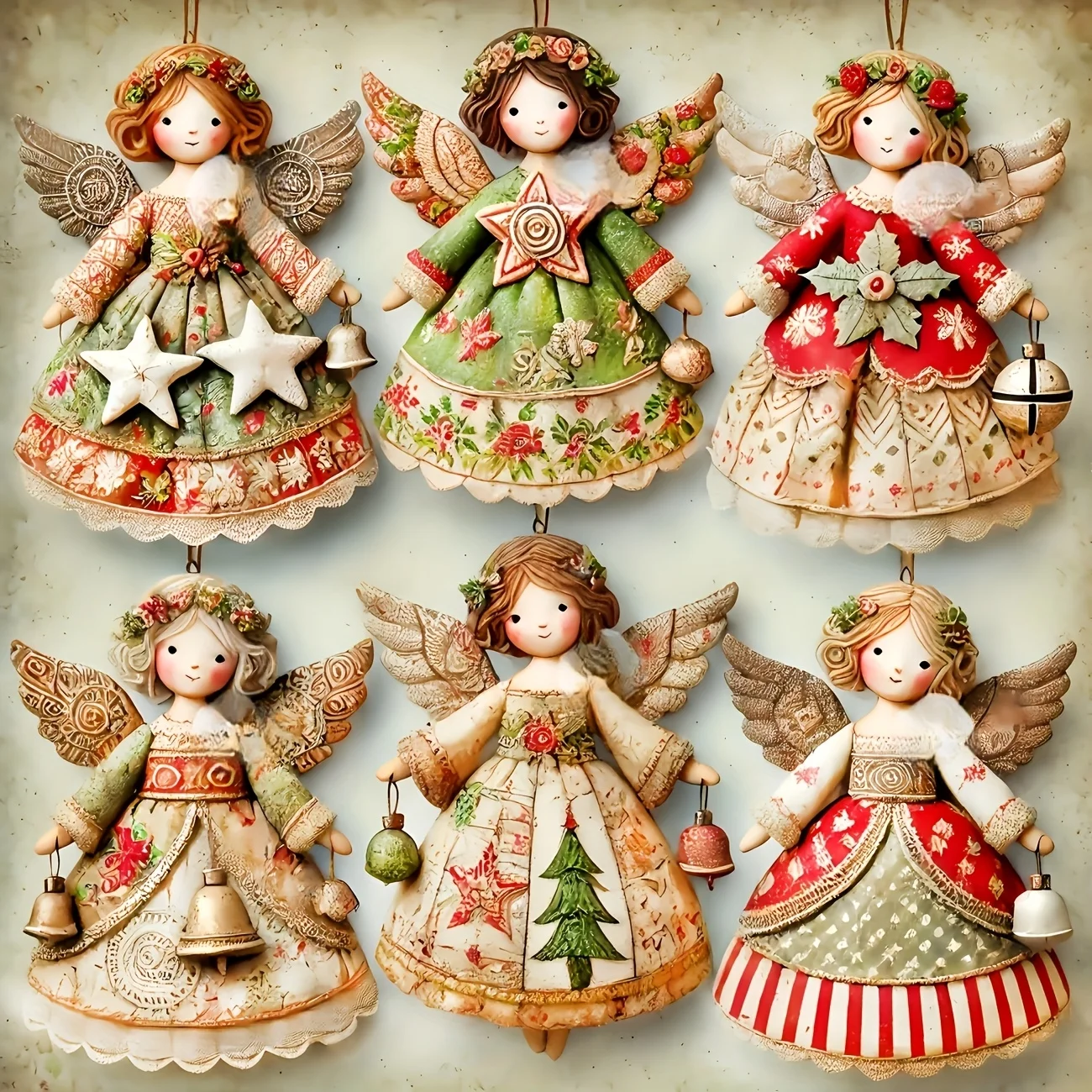 4pcs Handmade Vintage Wooden Angel Christmas Ornaments- Multi-Color Festive Decor for Tree, Home & Offic