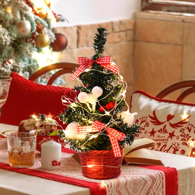 20/30cm Artificial Christmas Tree with LED Light Balls 2024 Christmas Decoration for Home 2025 New Year Gift Xmas Table Ornament