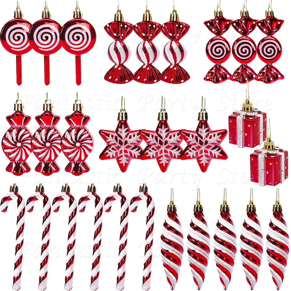 Christmas Hanging Candy Ball Lollipop Candy Cane Pendants Xmas Tree Hanging Ball Pine Cone Heart Ornament Set New Year Gift