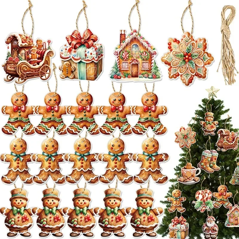 12/24pcs Gingerbread Man Ornaments Christmas Tree Wooden Hanging Decorations Pendants Cute Cartoon Xmas DIY Hangings Home Decor