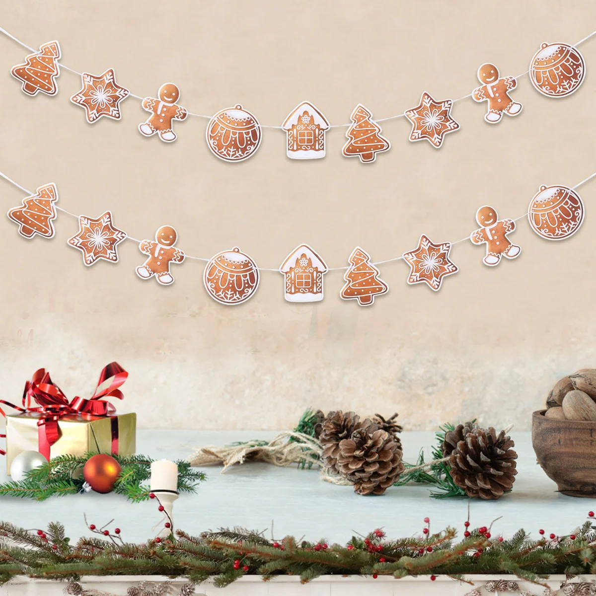 Christmas Gingerbread Man Paper Banner Merry Christmas Decor for Home 2025 Navidad Natal Xmas Pull Flag Ornament New Year 2026