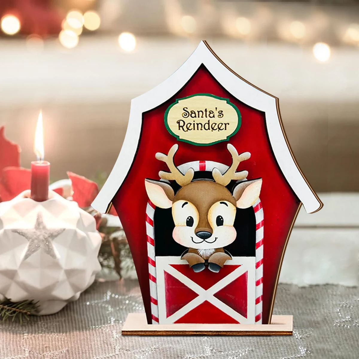 Christmas - themed Wooden Reindeer Stall Ornament Decor