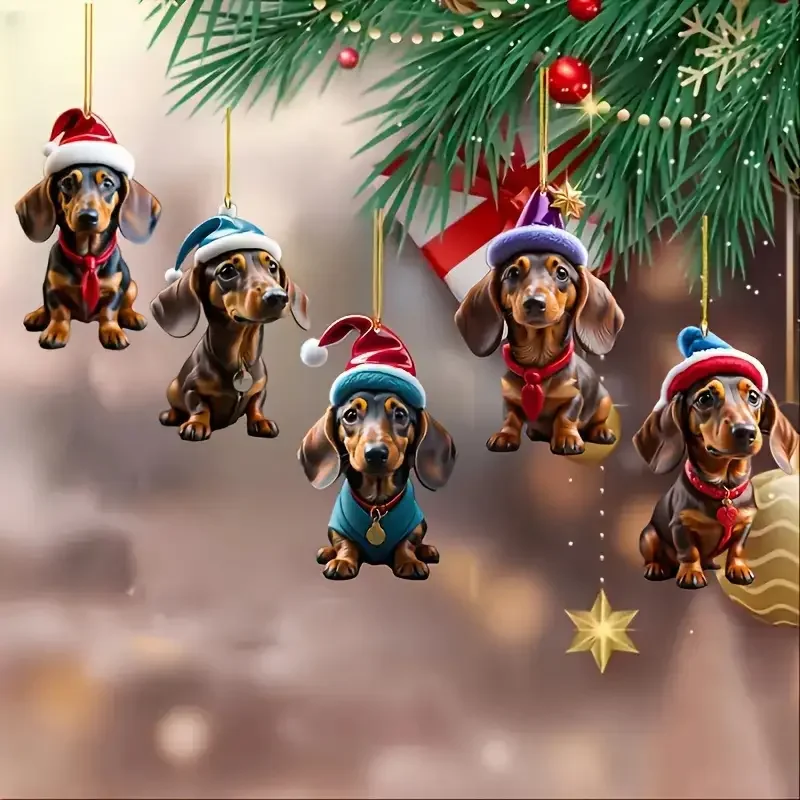 5/9Pcs Festive Dachshund Christmas Ornaments -Hanging Decorations with Santa Hats & Scarves, for Tree, Perfect for Room Decor