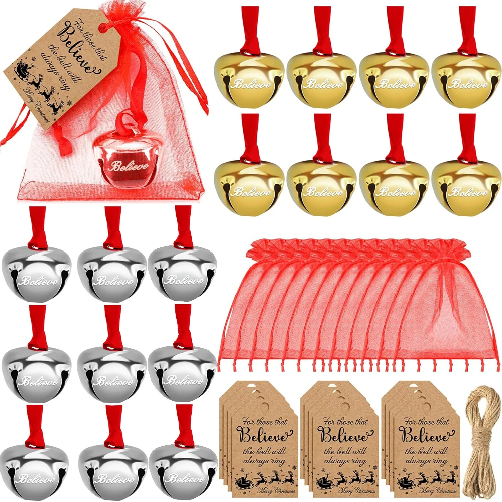 Christmas Believe Bell Ornaments, Polar Express Bell, Silver Sleigh Bell, Christmas Tree Bell Decoration Holiday Treat Gifts