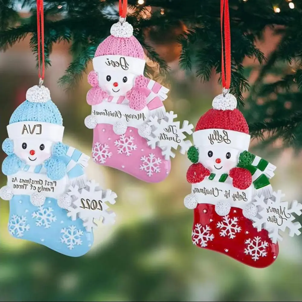 Acrylic Snowman Christmas Pendant Babys First Christmas Ornament Cute Snowflake Socks Wall Hanging Fireplace Ornament Home decor