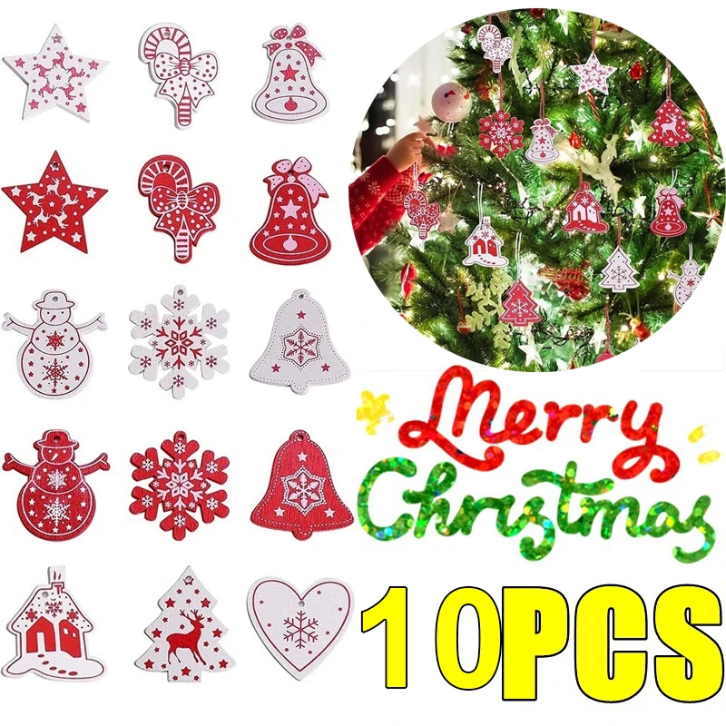 10Pcs Wooden Christmas Decorations Hanging Christmas Tree Snowflake Bells Elk Pendant for Home Decor Navidad New Year Ornament
