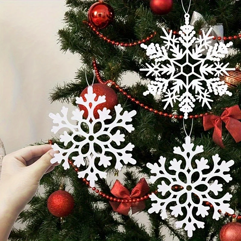 12pcs Set of Large White Snowflake Ornaments - Durable Paper, Suitable for Christmas Tree and Winter Wonderland Decorations