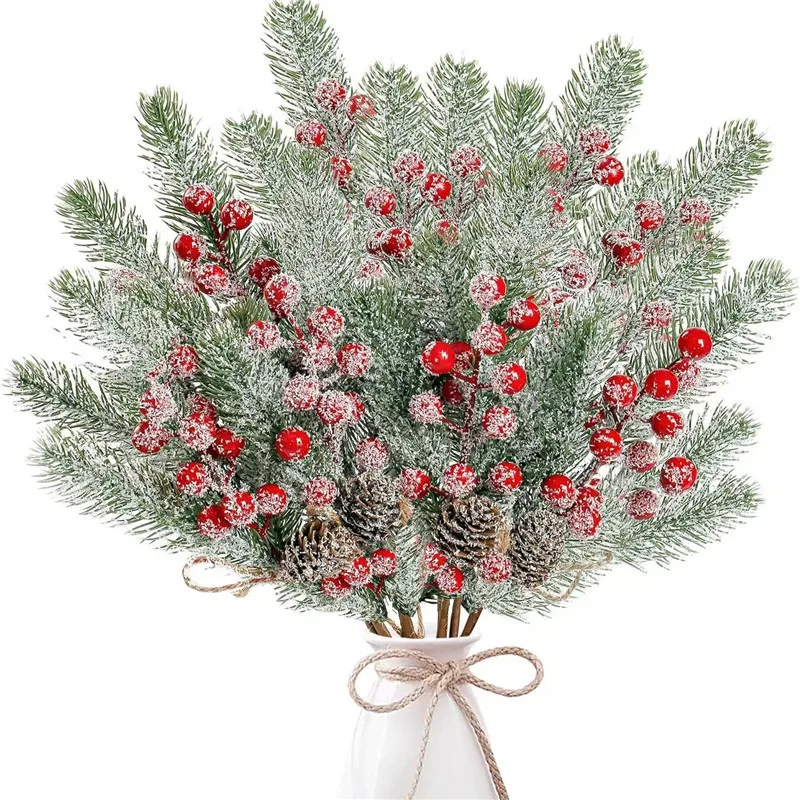 20/26cm Christmas Decoration Snowflake Artificial Pine Needle Branches Berry for Home Decor Xmas Tree 2026 Navidad Gift Ornament