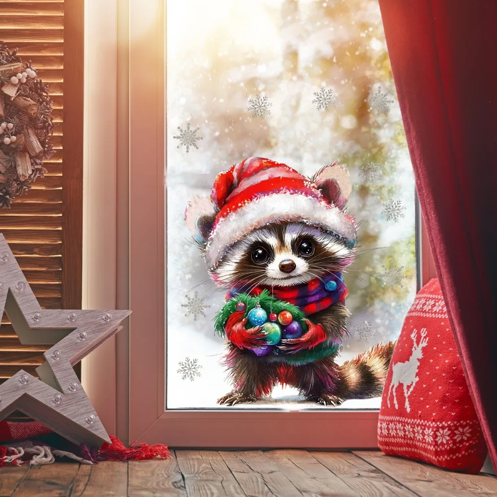 Christmas Wall Stickers, Animals, Rabbits, Christmas Glass Stickers, Window Stickers, Home Decorations, Holiday Decorations