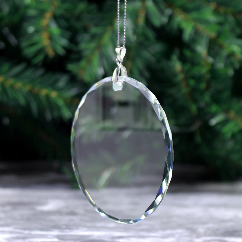 50pcs 8cm Clear Round Facet Hanging Glass Ornaments Christmas Tree Decorations GLass Craft Hang Decorations Party Favors Gits