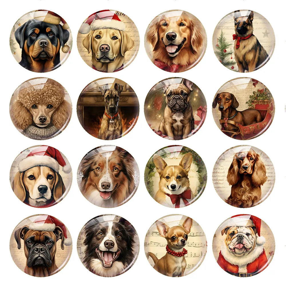 24pcs/lot Wearing A Christmas Cap Dog Pattern 8mm-25mm Round Photo Glass Cabochon Demo Flat Back Making Findings H192