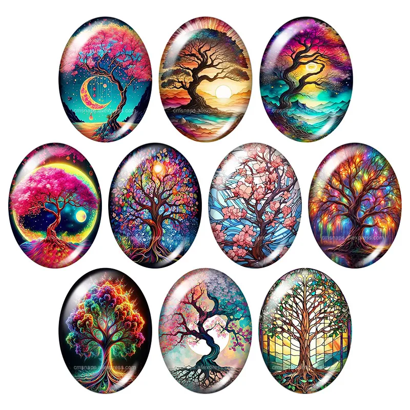 Colorful Life of tree Night tree Patterns 10pcs 13x18mm/18x25mm/30x40mm Oval photo glass cabochon demo flat back Making findings