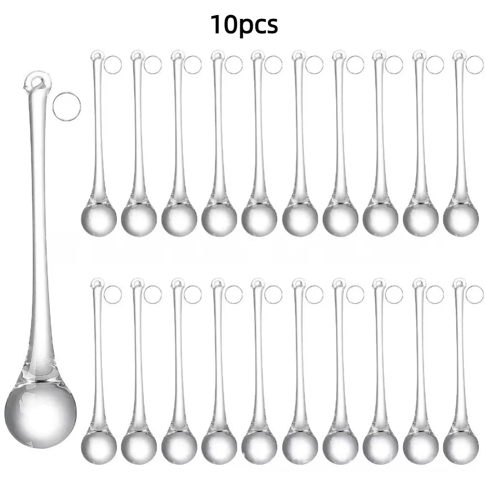 10Pcs Christmas Droplet Pendant Clear Glass Beads Teardrop Hanging Ornaments Crystal Raindrop Christmas Ornaments