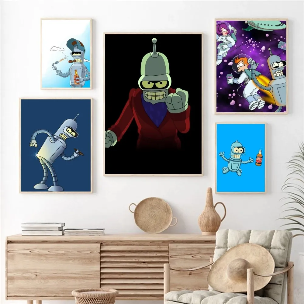 1pc F-Futurama Bender Self-adhesive Art Poster Waterproof Paper Sticker Coffee House Bar Room Wall Decor