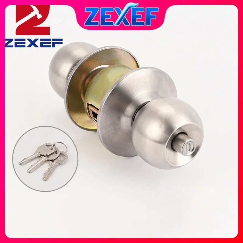 Home Armored Door Handle With Lock Knobs Interior Round For Bedroom Bathroom Stainless Privacy Turn Thumb Articles Locking Barn