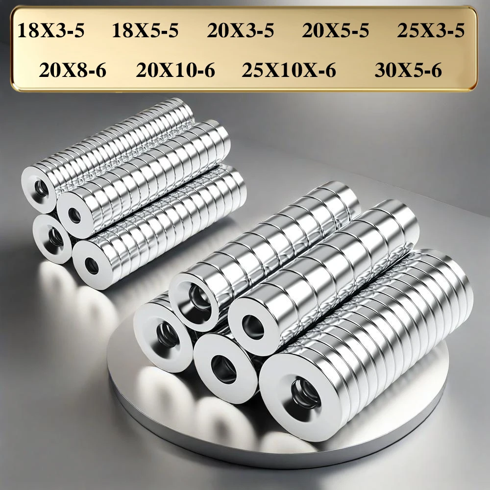 Powerful Neodymium Magnet N35 NdfeB Permanent Magnetic imanes Round With Holes Super Strong Fridge Magnets 18x5-5/20x5-5/20x10-6