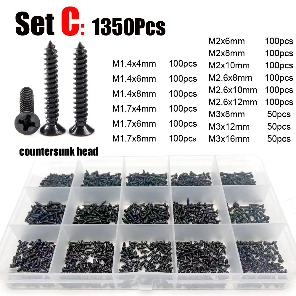 1350/2010x Black Mini Micro Phillips Flat Countersunk Head Self Tapping Wood Screw Set M1 M1.2 M1.4 M1.7 M2 M3 M4 assortment Kit