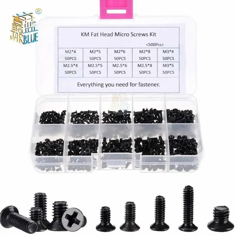 250Pcs/500Pcs M2 M2.5 M3 KM Screw Flat Head Phillips Screws Laptop Notebook Screws Set Kit for computer small screw