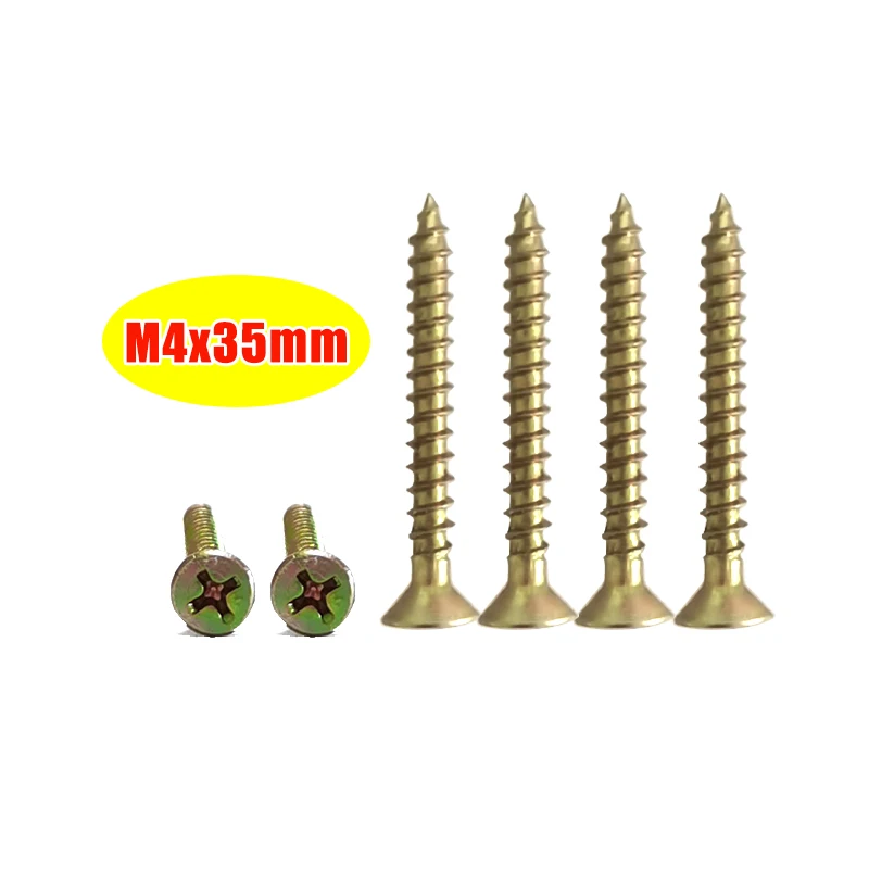 M4x35mm Wood Screws Phillips Drive Flat Head Carbon Steel Drywall Screw Thread 4mm Length 35mm Countersunk Self Tapping Screws