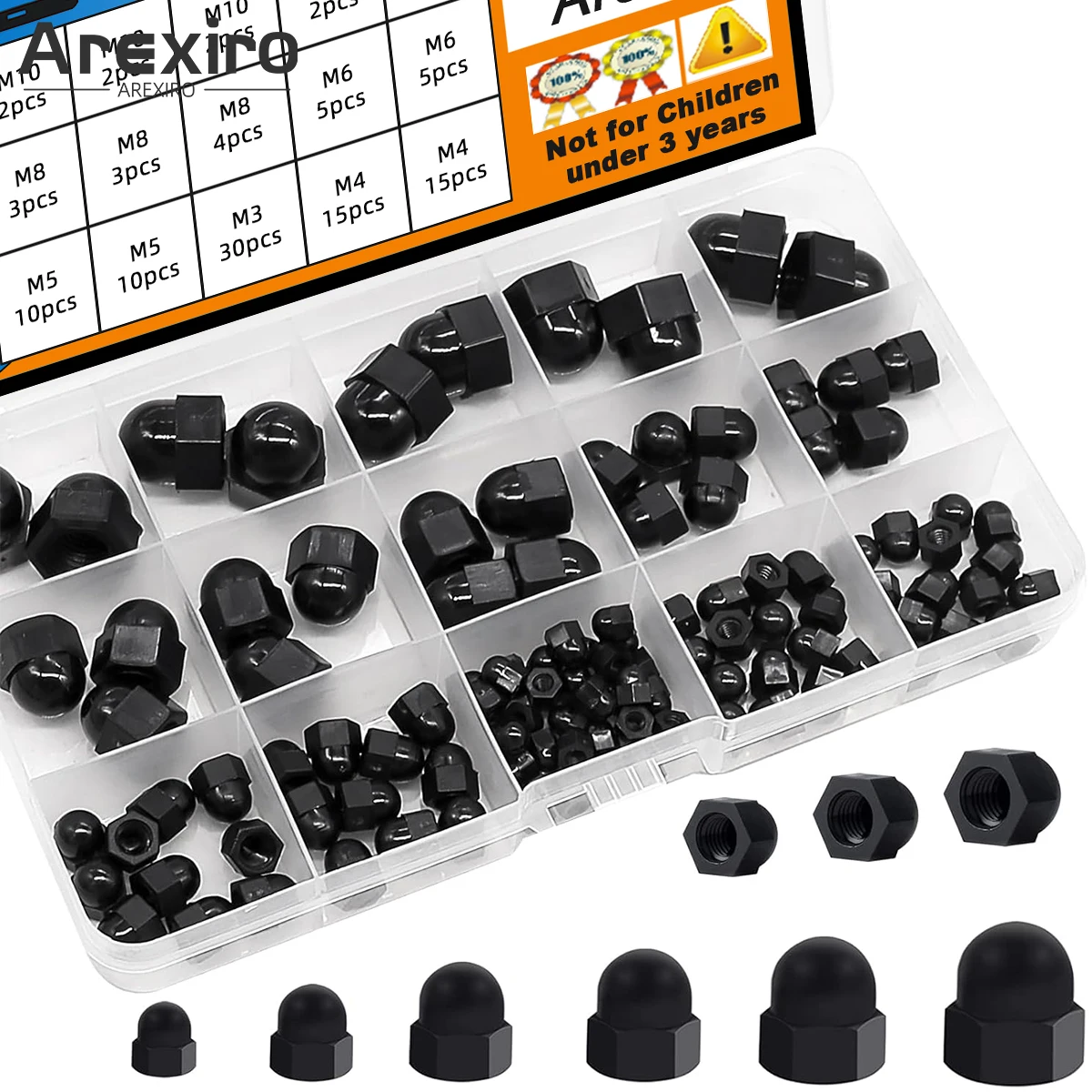 110Pcs of 6-Size Hexagonal Acorn Cap Nut Combination Kit - M3/M4/M5/M6/M8/M10 Bolt