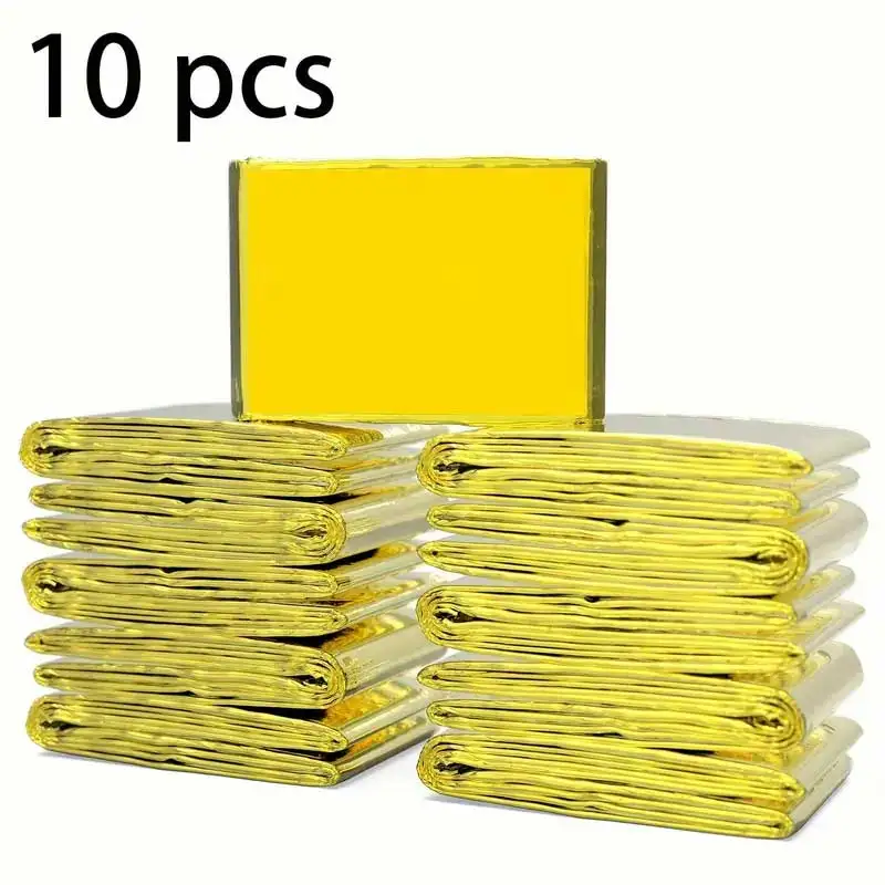 10pcs Outdoor Emergency Survival Blankets, Heat Retention, Durable & Portable for Camping, Hiking, Emergency Situations Hiking