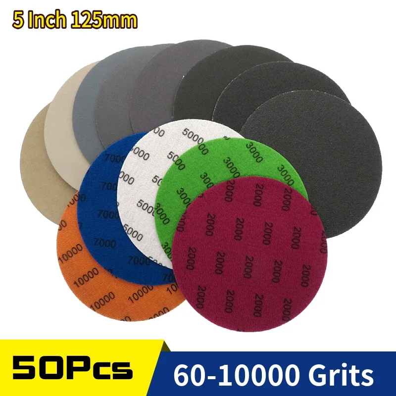 50Pcs 5 Inch 125mm Waterproof Sanding Discs Hook & Loop Silicon Carbide Sandpaper Wet/Dry 60 -10000 Grit for Polishing Grinding
