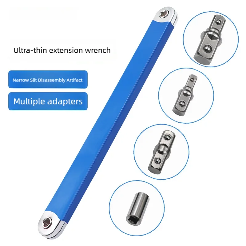 Impact Resistant Extension Wrench Set, Multi-Purpose Ratchet Wrench w/ 12, 14, 38mm Square Drive Adapters for Tight Spaces