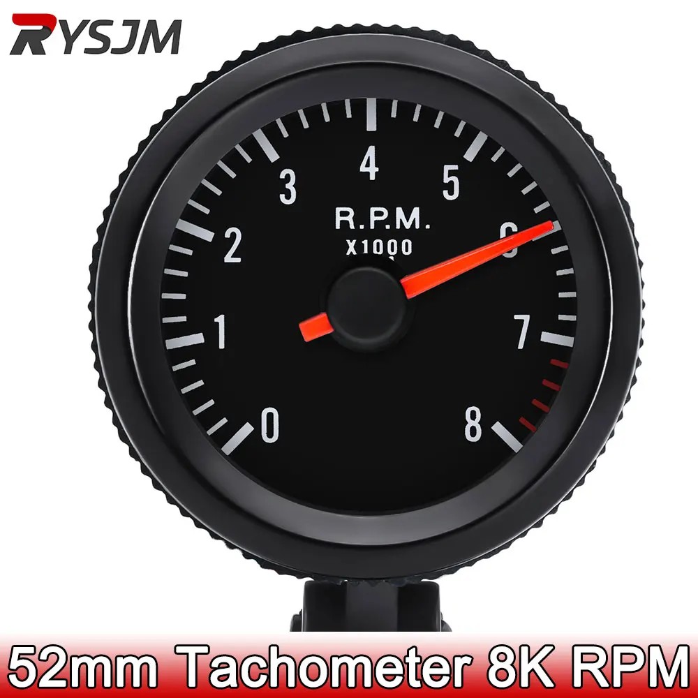 52mm Car Meter Tachometer + Gauge Holder RPM Gauge 0-8000RPM Analog Black Case With White LED For 1-8 Cylinders Gasoline