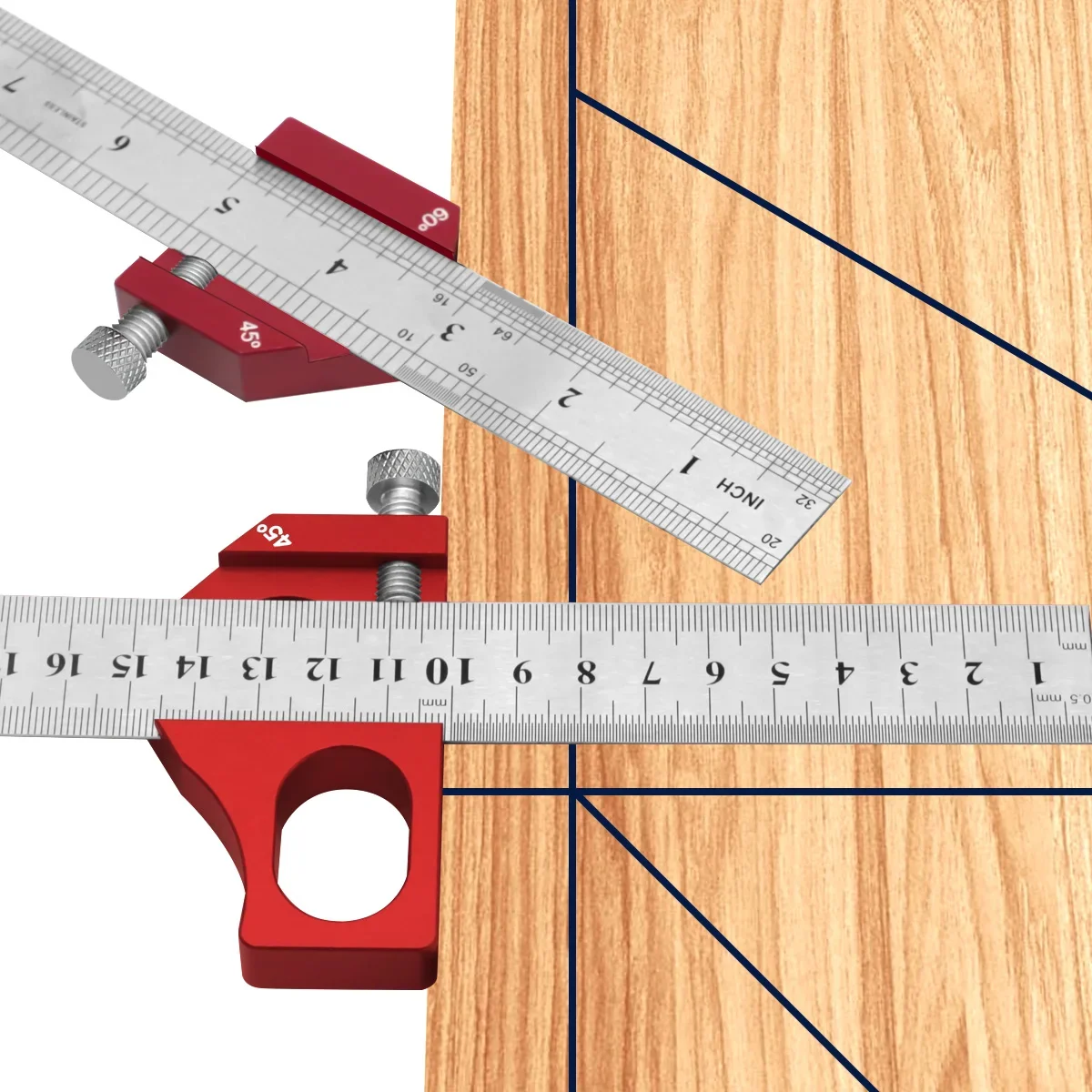 Adjustable Steel Ruler Positioning Block 45/60/90 Degree Angle Scriber Line Marking Gauge Fixed Position Locator Measuring Tool