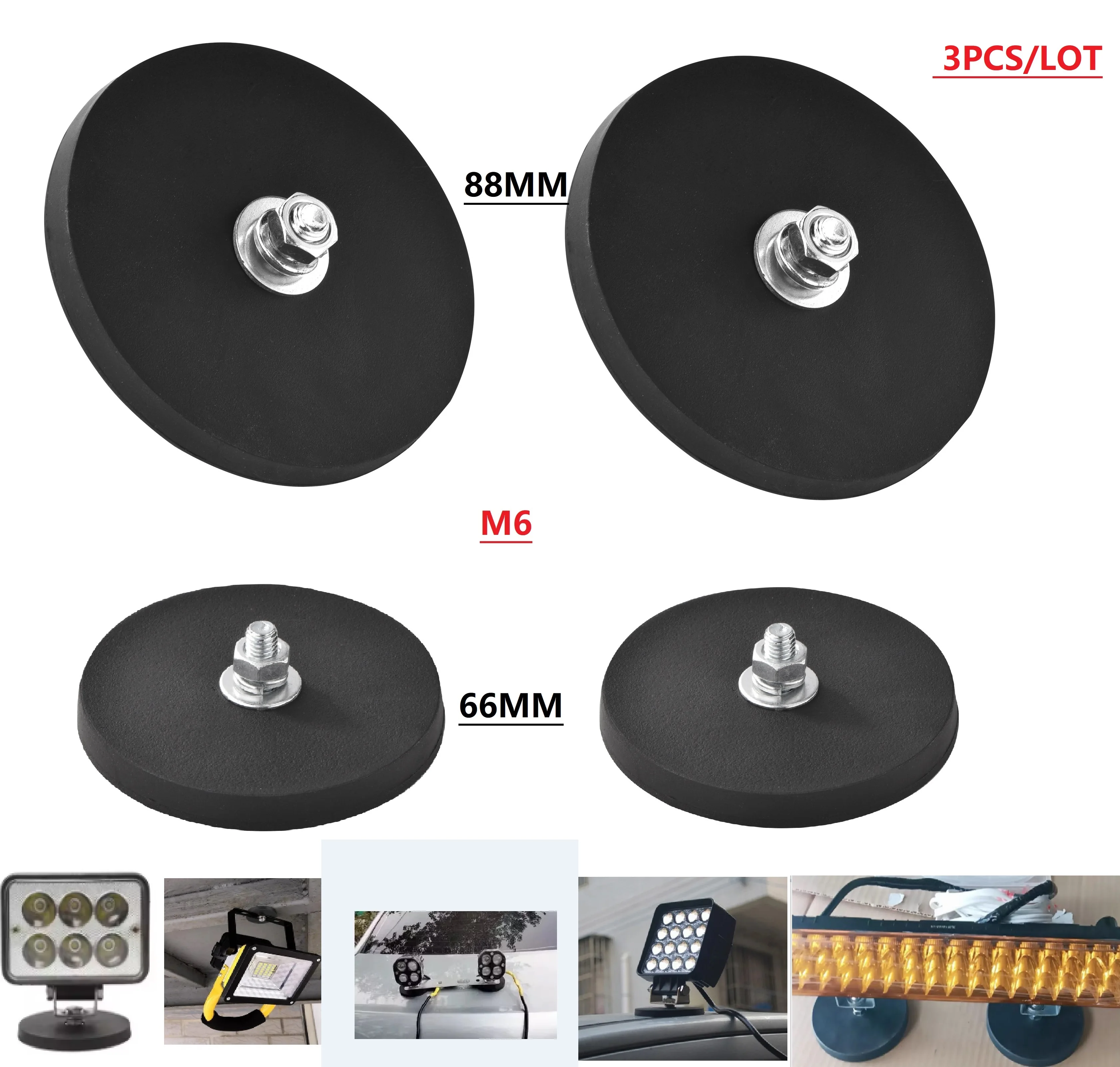 3pcs 66mm 88mm M8 Strong Rubber Bolt Magnetic Base With screws and washers Magnetic for Work Light SUV Offroad light stand fixed
