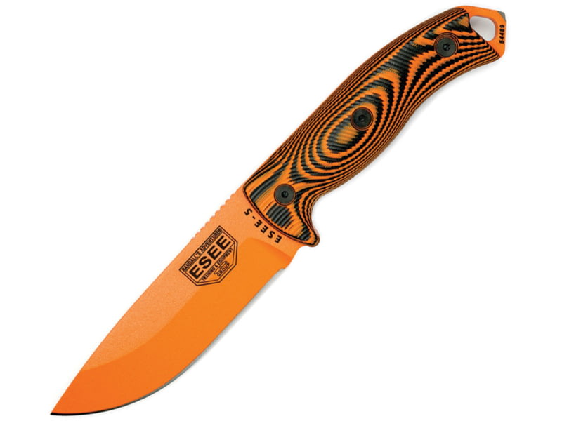 Esee Model 5 Fixed Blade Orange Knife 5.25" orange powder coated 1095HC steel blade Black and orange 3D machined G10 handle 5POR-006. Produced using some of the best resources these Fixed Blade Knives from Esee will preserve a good edge for longer...  Read more