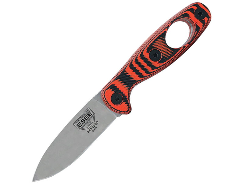 Esee Xancudo Fixed Blade S35V Org Knife Carabiner hole in handle 3" stonewash finish S35VN stainless blade Black and orange 3D machined G10 handle. Developed using some incredibly formidable resources these Fixed Blade Knives from Esee will keep a...  Read more
