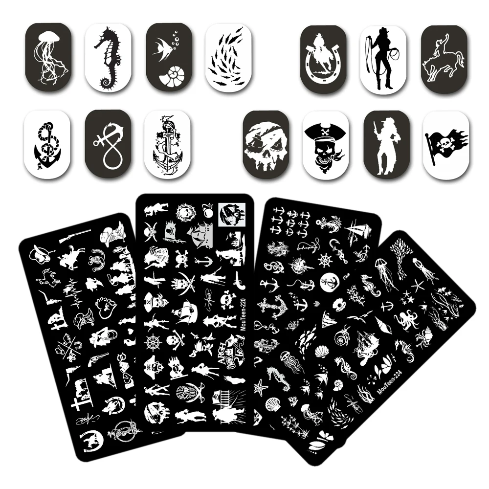 Mouteen New Product Launch Cowboy Nail Stamping Plate Ship's Anchor Nail Stamp Plate Marine Organisms Nail Plate#djh3
