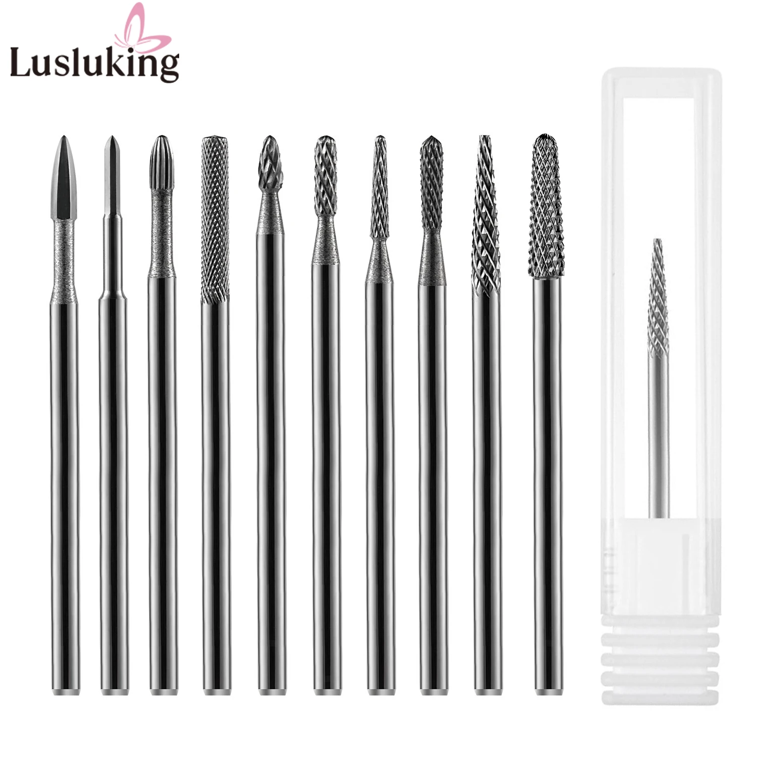 10 Style Tungsten Carbide Nail Drill Bits Nails Electric Files Tools Fine Grinding Bar Milling Cutter for Manicure Pro Efile