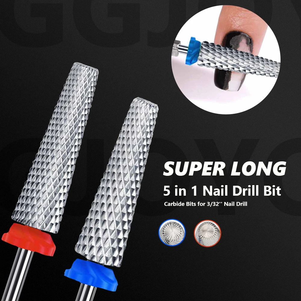 1pc 24mm Super Long 5 in 1 Nail Drill Bits, Cross Tapered Carbide Bit, 3/32" Remove Acrylic Nails/Gel  Read more