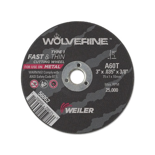 Weiler Wolverine Flat Type 1 Cutting Wheel, 3 in dia, 0.035 in Thick, 60 Grit, Aluminum Oxide (804-56062)