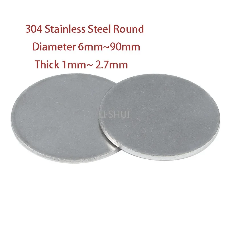 304 Stainless Steel Round Plate Circular Sheet Disc Solid Flat Pad Diameter 6mm~90mm Thick 1mm 1.1mm 1.3mm 1.8mm 2mm 2.5mm 2.7mm