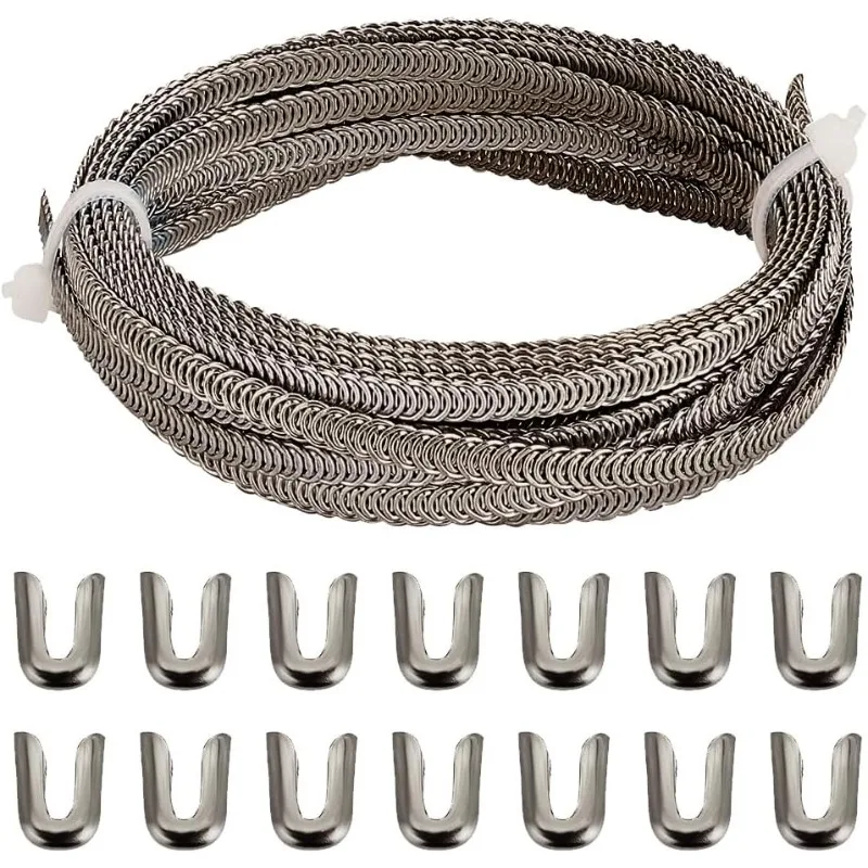 5 Yards Spiral Metal Boning Flat Steel Corset Boning Precut with 14Pcs Stainless Steel Spiral Bone Tips for Sewing Corset