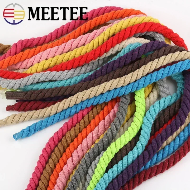 Meetee 10Meters 5/8/12/20mm Colorful Cotton Rope Three-strand Twisted Macrame Cord Home Decoration Ropes Sewing Accessories  Read more