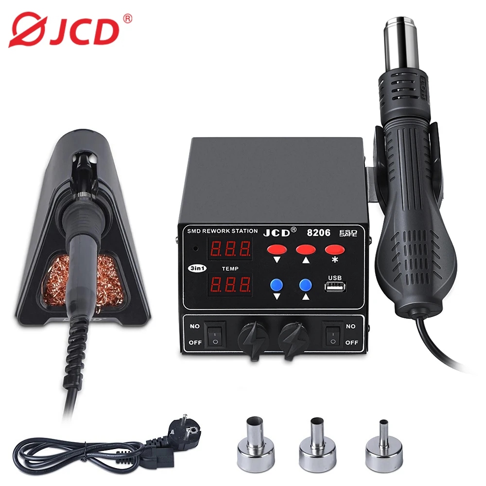 JCD 2 in 1 Soldering Station 800W Digital Display SMD Rework Hot Air Gun Soldering Iron 220V 110V ESD Welding Repair Tools 8206