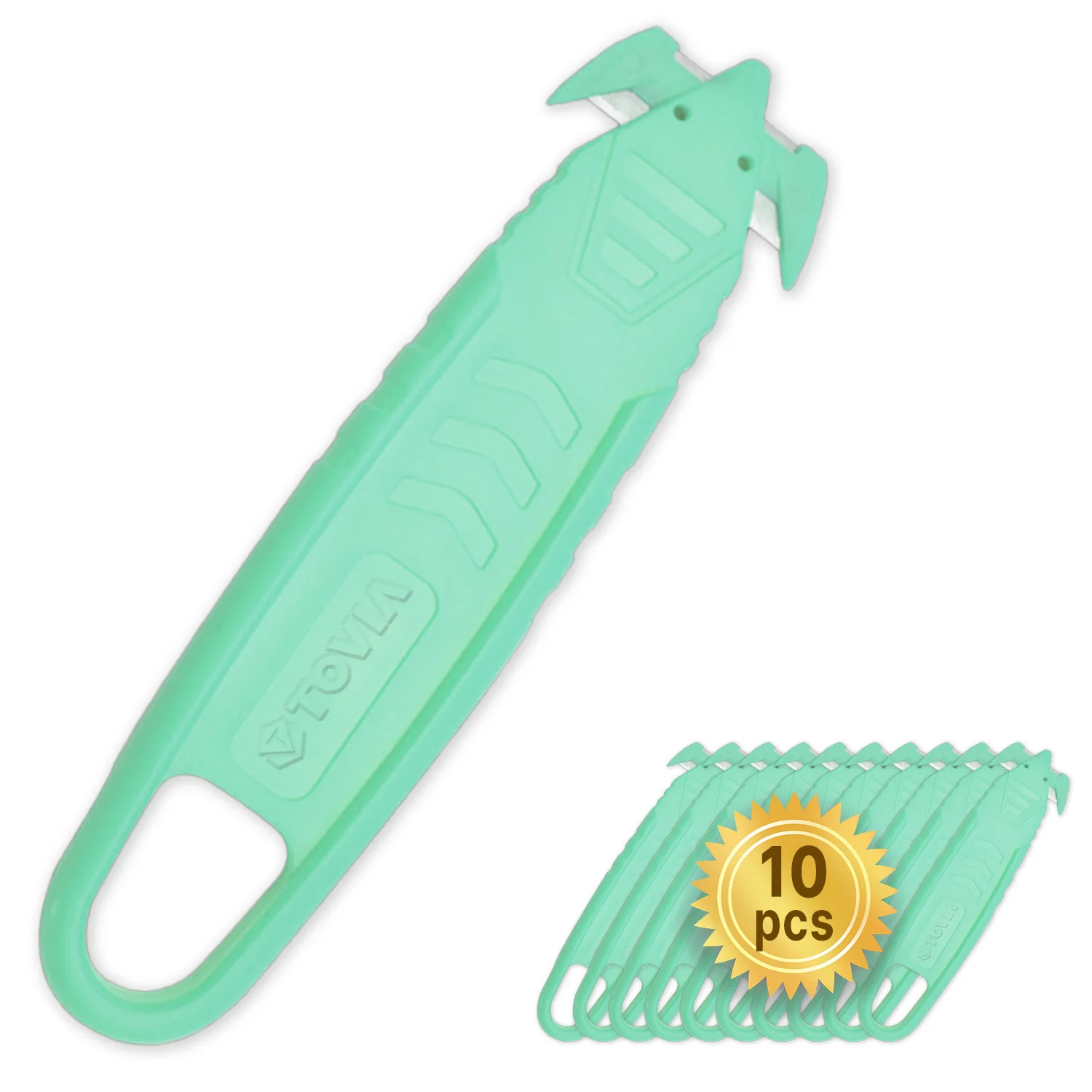 T TOVIA Safety Box Cutter Knife of Recessed Concealed Stainless Steel Blade, Carton, Shrink Wrap, Plastic Straps, 12pcs 3 colors  Read more