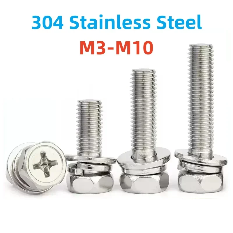 304 Stainless Steel Cross recessed Hex Head With Washer Sem Screw M3 M4 M5 M6 M8 M10 Flat Washer Spring Gasket Assemble Bolt  Read more