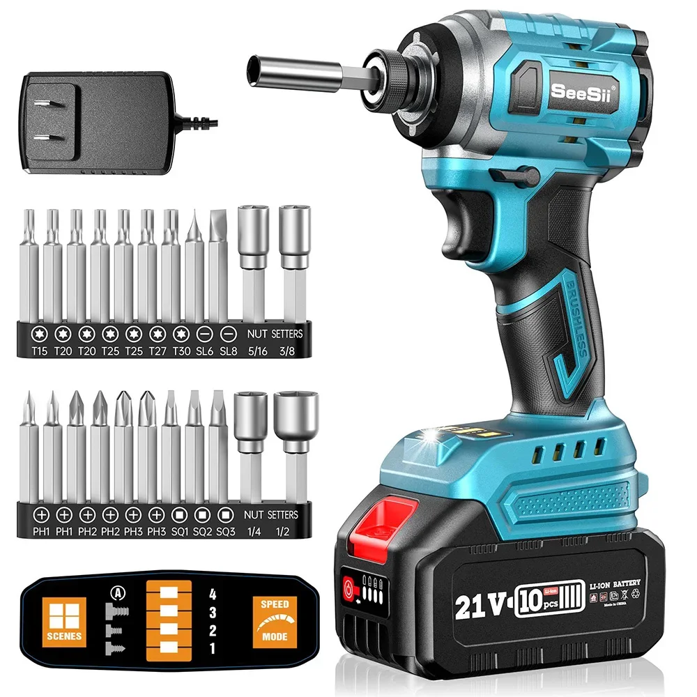 Seesii-QH220 Cordless Electric Screwdriver 1/4'' Brushless Electric Drill 220Nm Impact Driver Kit for Makita 21V Power Tool Set  Read more