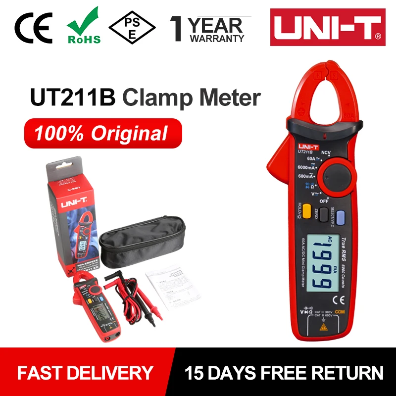 UNI-T Mini Digital Clamp Meter UT211B Auto True RMS 60A AC DC Current Pliers Ammeter Voltmeter Zero Mode Capacitance Measurement