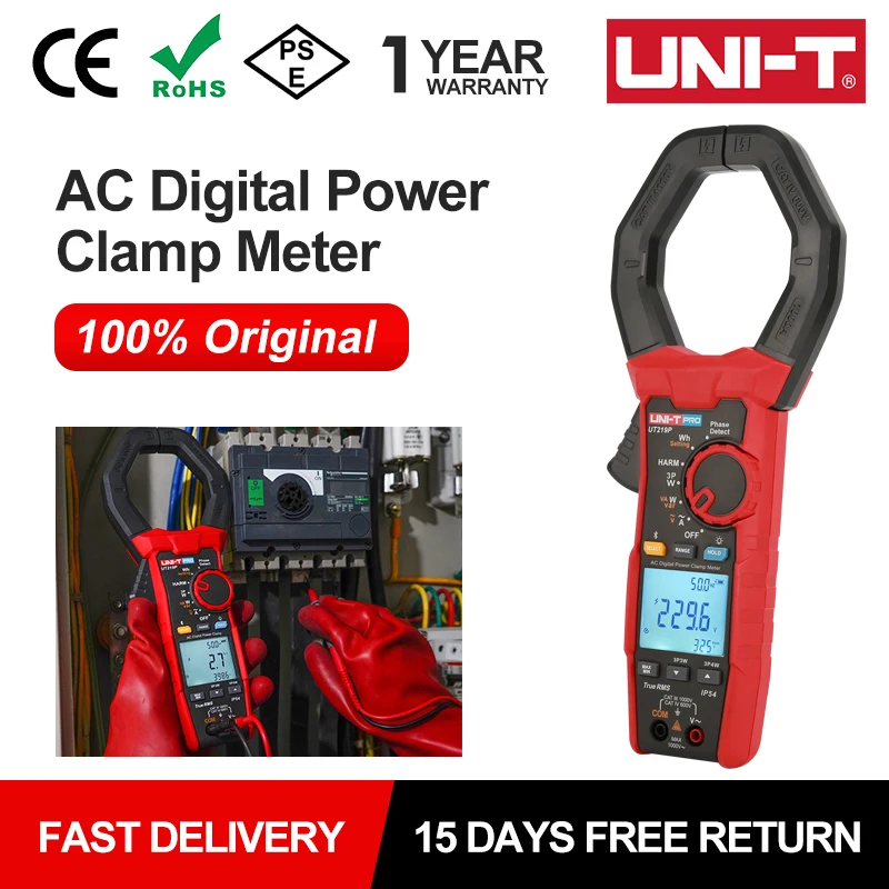 UNIT Digital Power Clamp Meter UT219P 1000A AC Pliers Ammeter True RMS Voltimeter 3 phase Power Factor Test Bluetooth IP54
