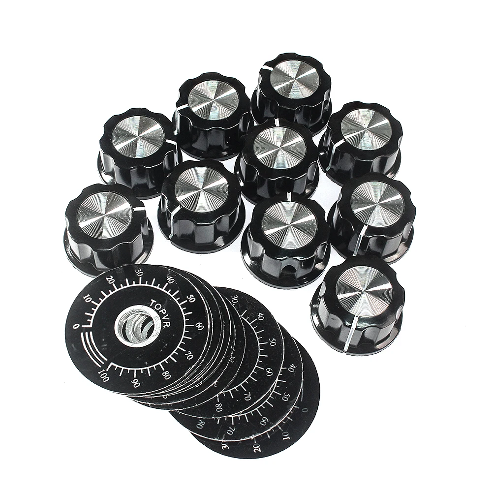 10 Set Potentiometer Knob Kit MF-A03 Dial Knob + MF-A03 Bakelite Knob with Scale Plate Sheet Scale Digital