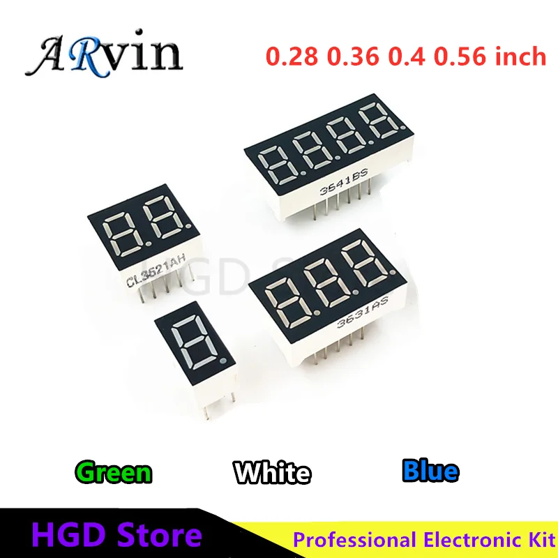 5pcs Digital tube Common AnodeCathode Green Blue White 1 2 3 4 Bit digital Tube 0.28 0.36 0.4 0.56 inch LED Display 7 segment