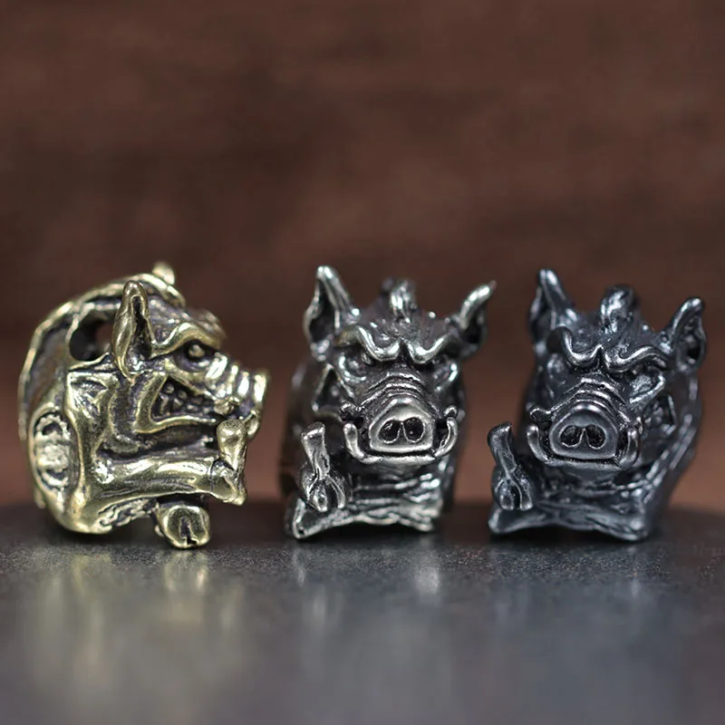 Wild Boar King Brass Knife Bead DIY EDC Paracord Lanyard Pendants Outdoor Survival Tool Retro Animal Piggy Bracelets Accessories  Read more